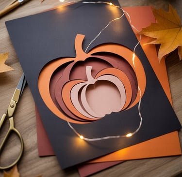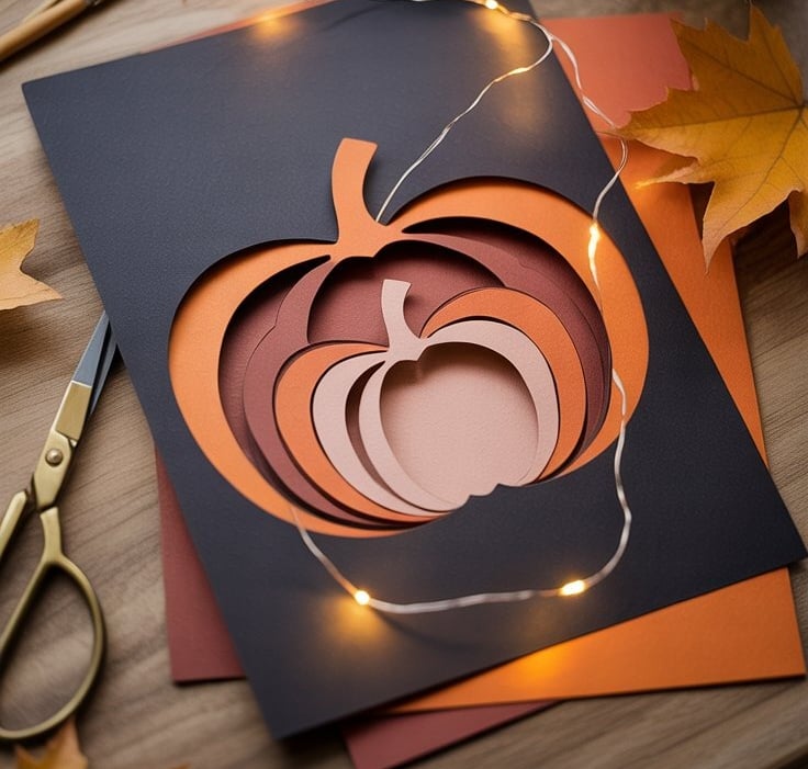 This project is all about contrast and texture — a dreamy mix of paper art and fall nostalgia. Imagine warm shades of amber, cream, and soft charcoal forming abstract pumpkin silhouettes that feel more like autumn light than Halloween kitsch. It’s cozy minimalism with a seasonal twist — perfect for your mantle or art nook.