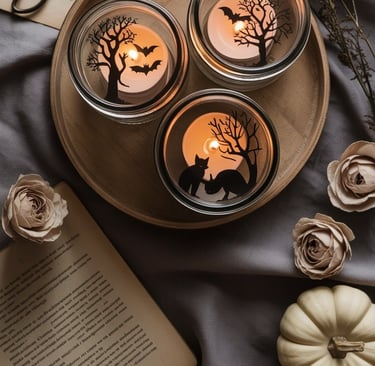 Arrange several jars together at varying heights to create a “shadow vignette” — it looks stunning on a shelf or entryway table. Pair it with soft instrumental music and a cup of cider for that slow, candle-glow October evening.