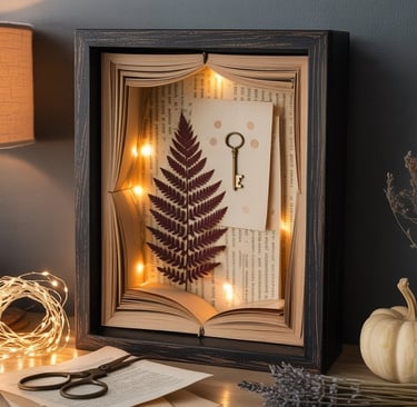 There’s a certain magic in tiny worlds — especially when they tell a story. The Shadow Box Tales let you build your own little slice of Halloween wonder: layered cutouts, dried flowers, old book pages, and soft glows of light that turn an empty frame into a mysterious window. It’s like peeking into a forgotten attic where imagination still flickers.