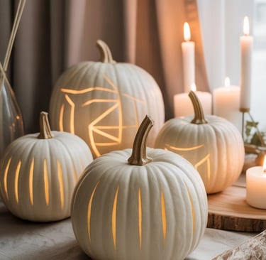 For those who love quiet sophistication — skip the faces and carve abstract shapes, vertical lines, or tiny window-like openings. It’s modern, serene, and looks stunning in groups.