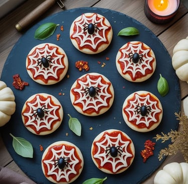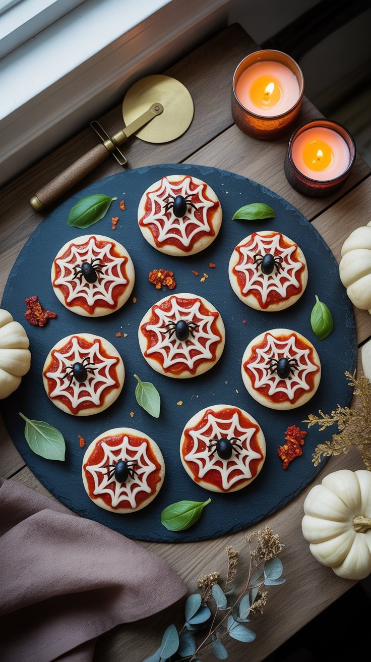 7. Spiderweb Pizza Bites — Savory Meets Spooky