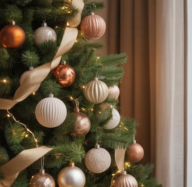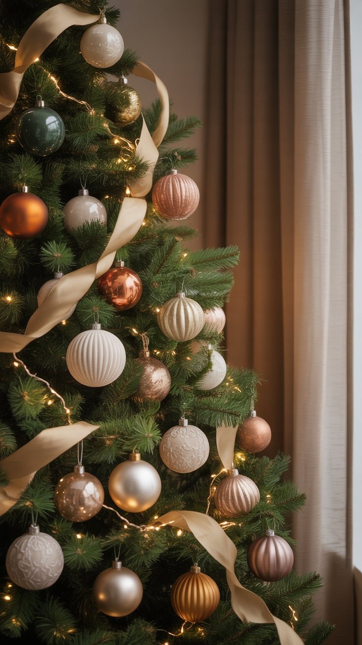 This is your moment to add quiet sophistication. Blend metallic ornaments in brushed gold, pewter, and bronze with matte ceramics or wood beads. The metallics catch the light while neutrals ground the look — elegance meets comfort.